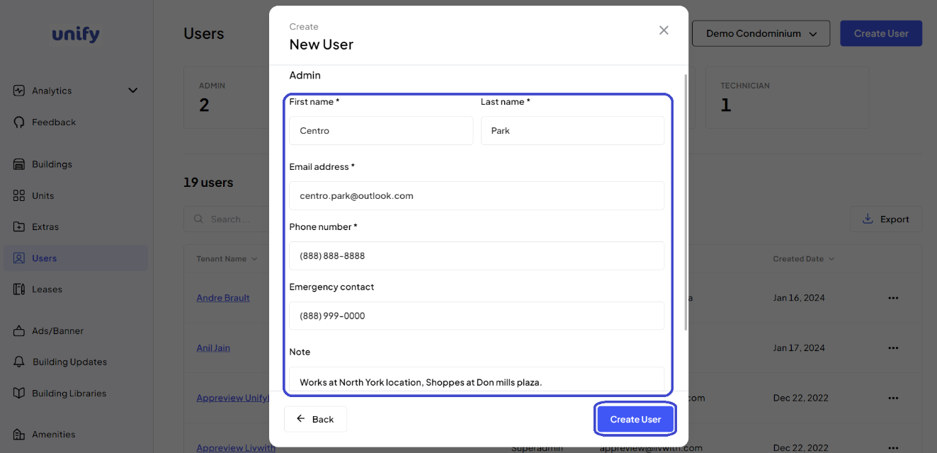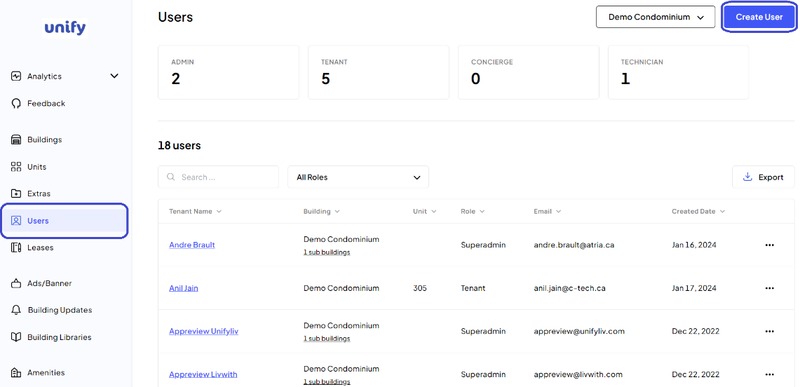 2. Begin User Creation: Click on the Create User button.