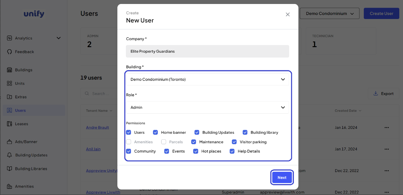 If a Superadmin, assign any applicable sub-buildings.