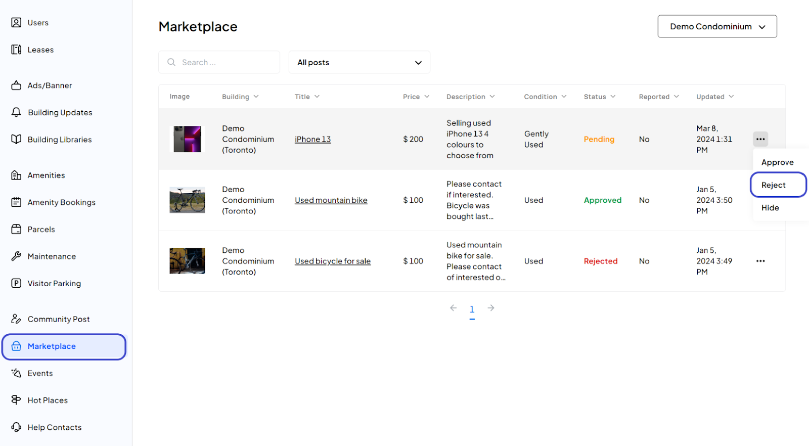 Here’s how to reject a marketplace post in LIV: